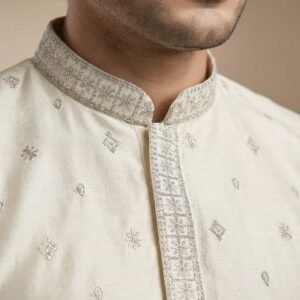 Ivory Embroidered Men’s Kurta – Elegant Festive & Wedding Wear