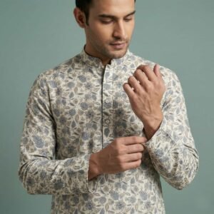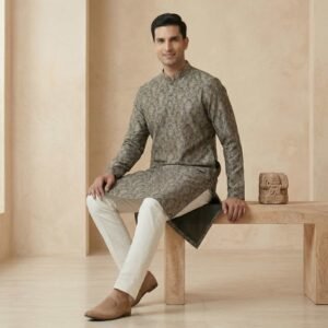 Grey Printed Cotton Men’s Kurta – Lightweight Everyday & Festive Wear